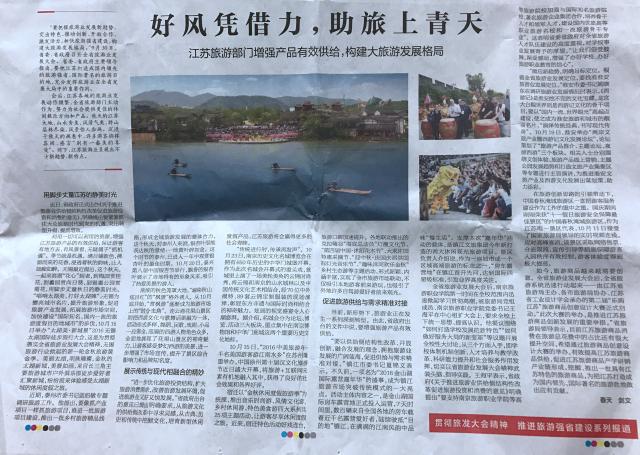 《新华日报》对我校深入学习贯彻全省旅游发展大会精神进行了报道。