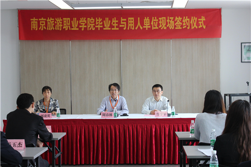 招聘会期间,南京旅游职业学院毕业生与部分用人单位进行了现场签约仪式。周春林、鲁学军、刘凌英等出席了本次签约仪式。