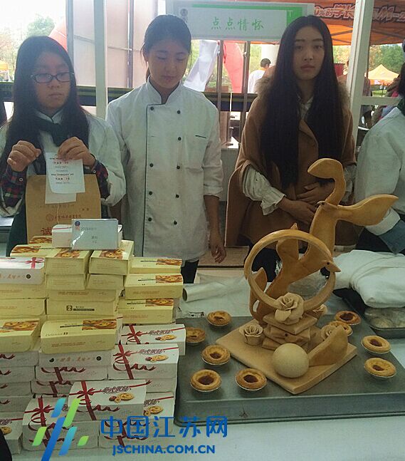 烹饪与营养学院的学生们尽力吆喝着自己的美食,物美价廉的美食吸引了许多师生驻足购买,市面上5块钱一个的蛋挞,在这里只要5块钱2个;黄油精心雕刻而成的建筑形象美观;用面点制作的雕塑、鲜花、玩偶,让人眼前一亮......展台前的各种美食,琳琅满目,让人应接不暇,垂涎欲滴。“所有美食原料新鲜放心,价格更实惠,特别棒!”来自其他系的同学蔡涛和几个好友边品尝边寻觅。每一道美食在学生们的精雕细琢下,色香味俱佳的姿态呈现在师生眼前。