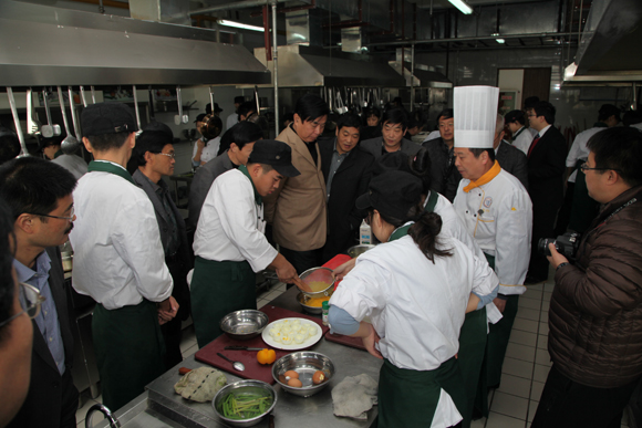 应邀来访的中学校长在张志祥陪同下实地考察了我院实训楼、酒店博物馆、多伦吧咖啡厅、中西餐厨房、图书馆等场所,品尝了学生的实训产品、自制咖啡和西餐点心,对我院的校园环境、办学特色和实习实训条件赞不绝口。