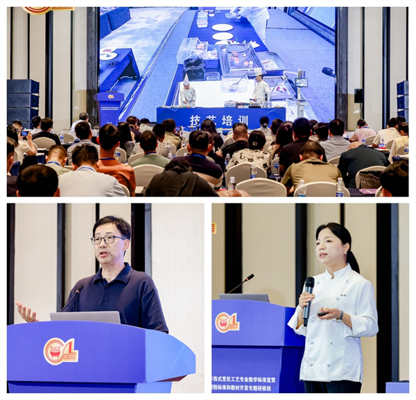 实践环节同样精彩纷呈。浙江旅游职业学院徐迅、人社部世赛专家郭小粉等通过“奶酪应用”“西餐产品设计”等技能研修,将理论转化为实操;南京旅游职业学院陆少凤大师工作室演示的“冷展台上胶技术”,展现了烹饪技艺的精益求精。