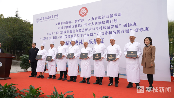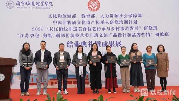 11月6日,中国非物质文化遗产传承人研修培训计划2025年度两项研修班结业典礼暨成果展在南京旅游职业学院举行50位非遗学员现场呈现为期一个月的研修成果,两项研修班分别聚焦“长江沿线非遗美食技艺传承与乡村旅游发展”“江苏香包 - 剪纸 - 刺绣传统技艺类非遗文创产品设计和品牌营销”主题。