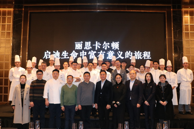 南京旅游职业学院烹饪与营养学院在南京丽思·卡尔顿酒店和东郊国宾馆分别设立“现代学徒制项目示范基地”,校企双方代表共同为现代学徒制项目示范基地揭牌并合影留念。