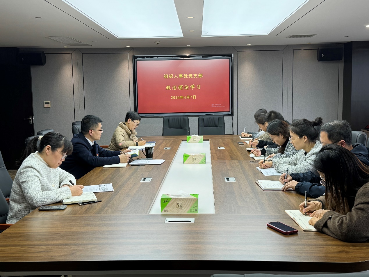 4月7日下午,组织人事处党支部在行政楼411会议室组织开展了集中政治理论学习,围绕习近平文化思想、意识形态、安全生产稳定工作等主题开展专题学习,学习由支部书记王茂盛主持。