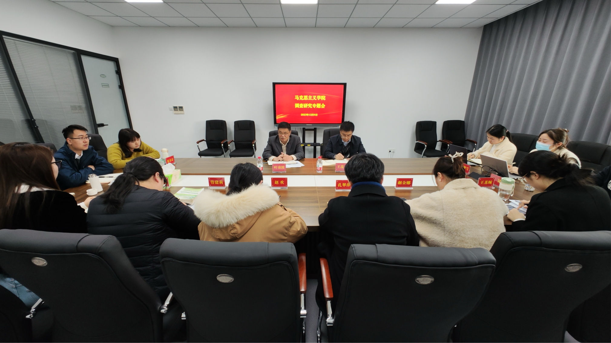 为加强我院思政课教师队伍建设,高质量办好新时代思政课,推进马克思主义学院发展,12月6日下午,学院党委书记叶凌波,党委委员、组织人事处处长王茂盛到马克思主义学院开展调查研究专题会。马克思主义学院副院长孔翠萍及全体思政课教师参加会议。