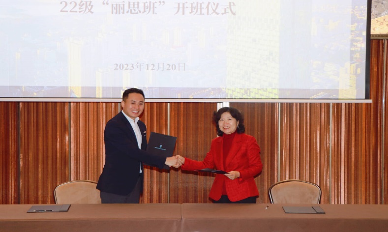 邵华和王世峰代表校企双方就22级“丽思班”签订了合作协议。学生代表徐婉钰发言,她表示,作为 “丽思班”的新成员,将秉持“以微笑和知识服务社会”的校训,致力于成为未来优秀的绅士和淑女,并以绅士淑女的态度为绅士淑女服务。