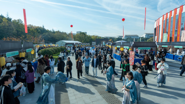 在专业教师的指导下,从主题店名设计到菜品研发、从财务预算到成本控制、从网络营销到宣传预售,基本由学生自主完成。因此,宋食记、玉京秋、梦华宋宴、应天名肴等50个主题展位应景而生,200多种小吃汇聚于此,古今融合、中西汇聚,融宋礼、宋服、宋舞、宋乐、宋茶、宋点等元素于一体,达到了入眼、入耳、入鼻、入口、入心的“五感”沉浸式体验,不仅是对传统文化的继承,更是学生专业技能的锻炼、才艺的施展、创新创业的实战。
