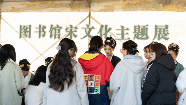 穿越城门,进入《清明上河图》背景下的宋朝集市,仿佛“穿越”到了文人笔下那个民殷国富、文采风流的时代——随处可见身着宋服的俊男美女,还有“苏东坡”“李清照”“岳飞”等宋代名人雅士“穿越巡游”“带刀侍卫”全场巡逻……与基础部联合开发的“寻找古籍中的美食”活动,指定店铺将宋代古籍中的美食隐藏于菜单中,参与活动的同学打卡后可以领取纪念品,增加了文化性与趣味性。