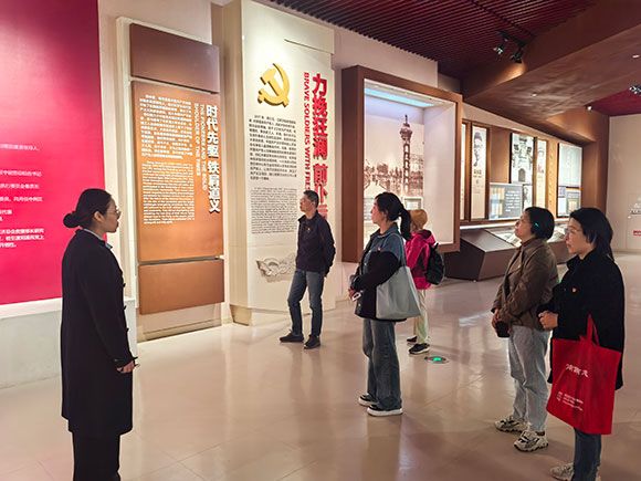 在纪念馆展厅内,党员们认真观看展板旁循环播放的革命历史影像资料,被先烈们坚定的革命信念深深感染。参观过程中,大家不时驻足交流,分享学习感悟,现场气氛庄重而热烈。