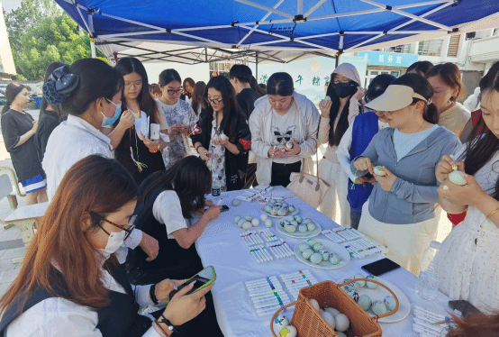 活动过程中,同学们体验包粽子、挂艾叶、编彩绳、绣香囊、点雄黄、绘鸭蛋等系列活动,在“浓情端午 粽享南旅”包粽子活动中,同学们捋粽叶、填糯米、加馅料、裹粽叶、扎绳子,在实践中学习包粽子的传统技艺。在“创意鸭蛋来相绘”鸭蛋绘制活动中,同学们以端午、人居、山水、卡通等为主题设计样式,在咸鸭蛋上进行创作,精心的绘画让普通的咸鸭蛋成为一颗颗“艺术品”。在“五色丝线伴我运”香囊编制活动中,同学们穿针引线,有条不紊地完成手工制作的各个环节,同时交流分享香囊文化的历史渊源和文化内涵。活动还设有非遗漆扇、编五彩绳、端午知识知多少等趣味项目,让同学们在欢乐的氛围中加深对传统习俗、优秀传统文化的了解,进一步丰富同学们的校园文化生活。