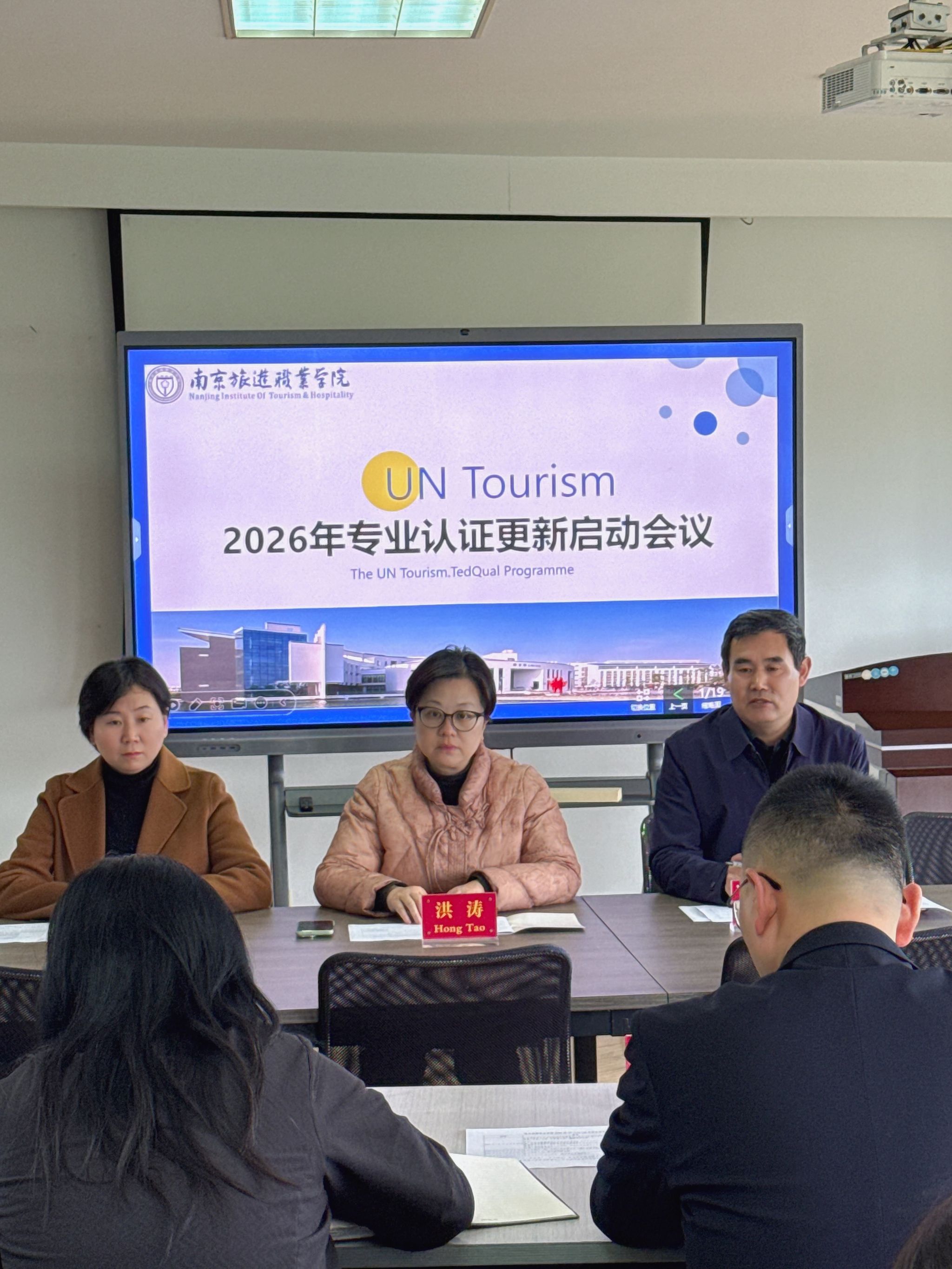 3月20日,学院组织召开了联合国旅游组织(UN TOURISM)教育质量认证更新工作启动会,学院党委委员、副院长洪涛,各二级学院副院长、专业负责人出席了会议。会议由对外交流与合作处处长颜忠主持。