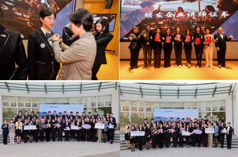 2025级新生代表上台发言,表达了珍惜机会、努力成才的决心。现场还举行了庄重的班徽授予仪式,校企双方代表共同为新生代表佩戴专属的定制班徽,象征着荣誉、认同与责任的传递。最后,学院为参与万豪产教融合课程共建的行业导师们颁发了聘书,感谢他们将行业前沿理念、标准与方法融入课堂,助力万豪定制化人才的培养。