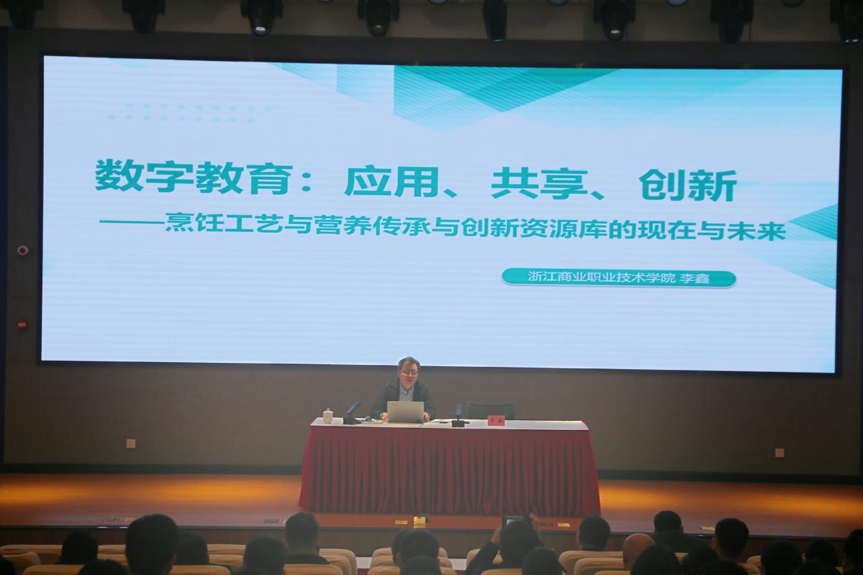 李鑫解读了国家教学资源库的建设背景。他强调,实现数字化资源应用、共享与创新离不开资源库建设,离不开教师对数字资源敏锐的洞察力。他以浙江商业职业技术学院烹饪工艺与营养专业的国家教学资源库为例,从三库一馆三中心等方面进行了经验分享,并强调教师应当响应数字化建设目标,重视大数据收集、挖掘、应用,改革教学方式,利用资源库平台提升数字素养。