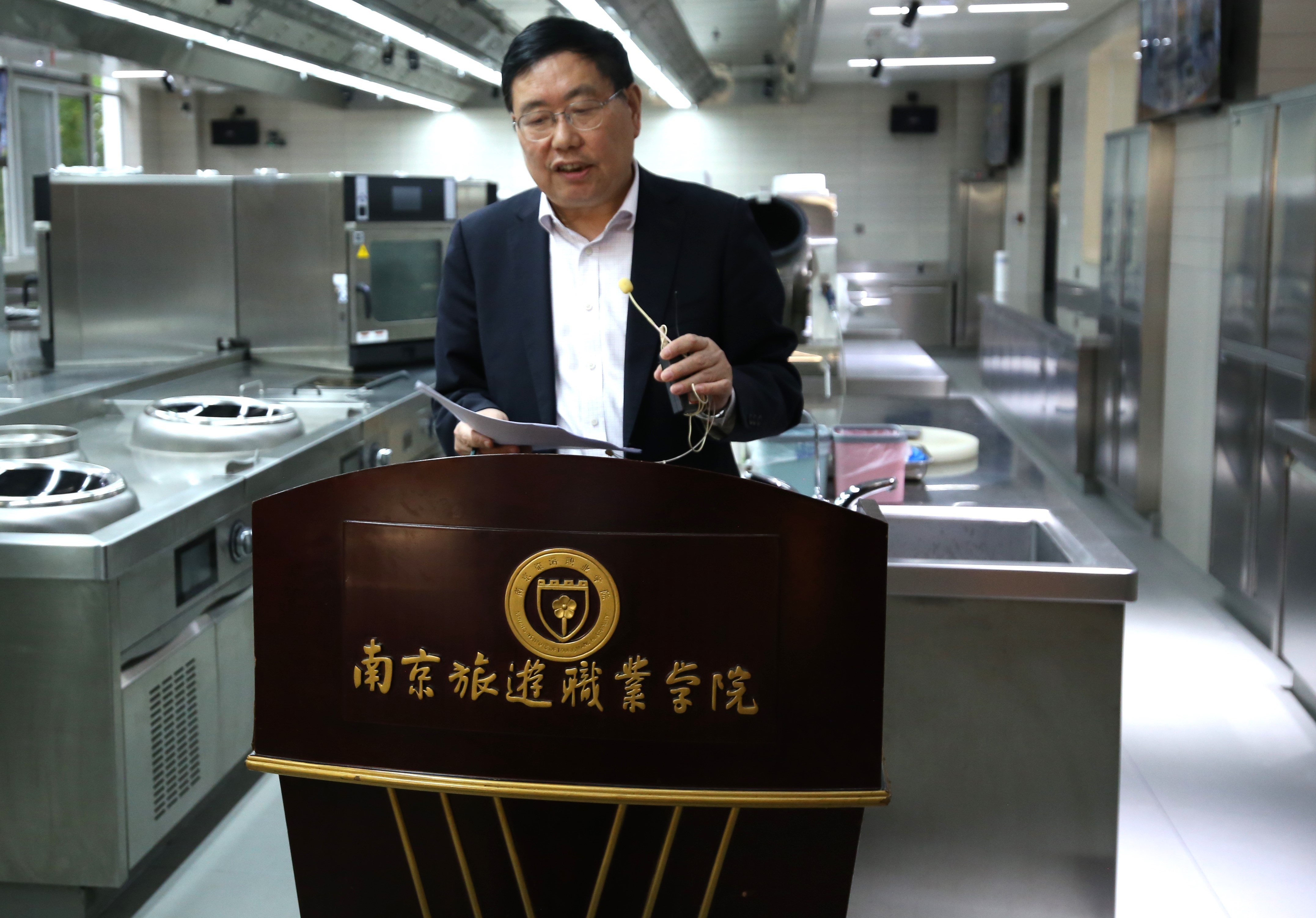 为学习贯彻党的二十大精神,推进学院省高水平高职学校建设,加强校企合作,深化产教融合,进一步提升课堂教学质量,10月25日下午,学院在实训楼一楼烹饪VDI一体化实训教室举行优质课堂教学展示活动——数智化产教融合课程《烹饪基础--烤》教学展示,由江苏省优秀烹饪工匠、烹饪与营养学院高志斌老师主讲,学院产业教授、味之道创意小厨董事长孙谨林老师助讲。学院总督学、教学督导室主任田寅生教授,校级教学督导李尚峰教授,教务处副处长张玉杰等参加了活动,各二级学院(部)50余名教师到实训楼现场观摩,另有139名教师参与线上学习,活动由张玉杰主持。