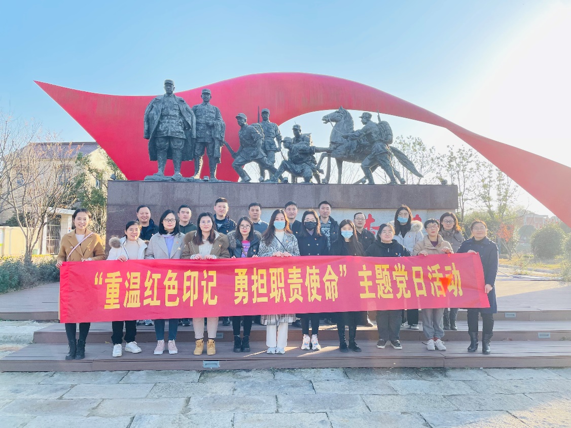 为进一步深入学习领会习近平新时代中国特色社会主义思想,重温革命历史,缅怀革命先烈,牢记初心使命,传承红色精神,2021年12月6日,第二联合党支部联合组织人事处党支部、后勤管理处党支部同赴南京溧水区白马镇李巷进行“重温红色印记 勇担职责使命”主题党日活动。