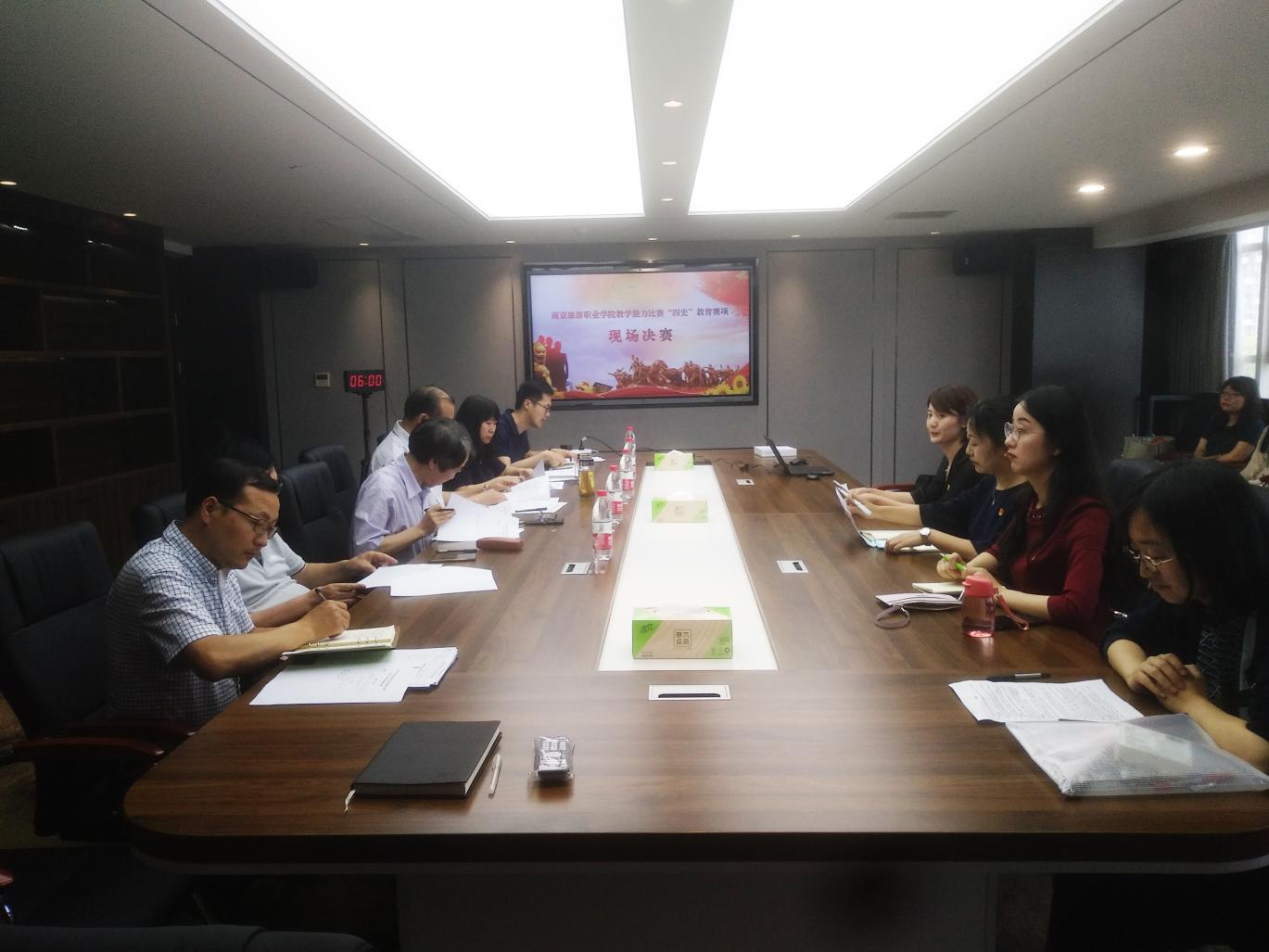 为深入学习贯彻习近平总书记在党史学习教育动员大会上的重要讲话精神和关于“四史”教育的重要论述,扎实推进南京旅游职业学院党史、新中国史、改革开放史、社会主义发展史学习教育,凝聚学院广大教师思想共识,提升教师政治素养,引导教师“知史爱党、知史爱国”,增强教师开展“课程思政”和“思政课程”的教学能力和水平,迎接建党 100 周年,6月8日下午,学院在411会议室举行“四史”教育专项教学比赛现场决赛。党委书记周春林,党委副书记、副院长黄斌,副院长操阳,纪委书记田寅生出席,并担任此次决赛评审。