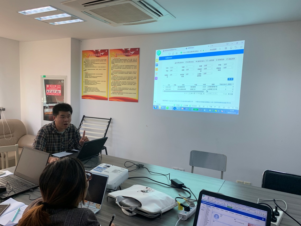 之后,新教务系统的供应商正方软件股份有限公司的教务系统软件工程师孙强对系统进行培训,重点培训内容为排课模块中专业排课任务书落实、教学计划与教学任务落实的实施与使用。同时他还结合学院实际情况,就如何使用新的教务系统进行排课工作进行了操作演示和说明。