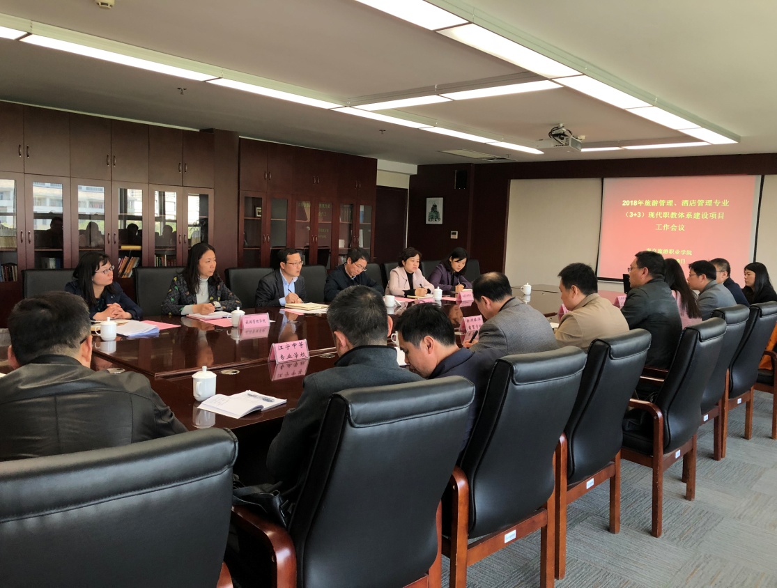 4月9日上午10点,我校在行政楼411会议室召开2018年旅游管理、酒店管理专业(3+3)现代职教体系建设申报工作会议。校长周春林、教务处副处长孙爱民、酒店管理学院院长洪涛、副院长苏玮、旅游管理学院院长孙斐、副院长金丽娇、合作院校负责人、项目具体负责人等出席了会议,会议由教务处副处长孙爱民主持。