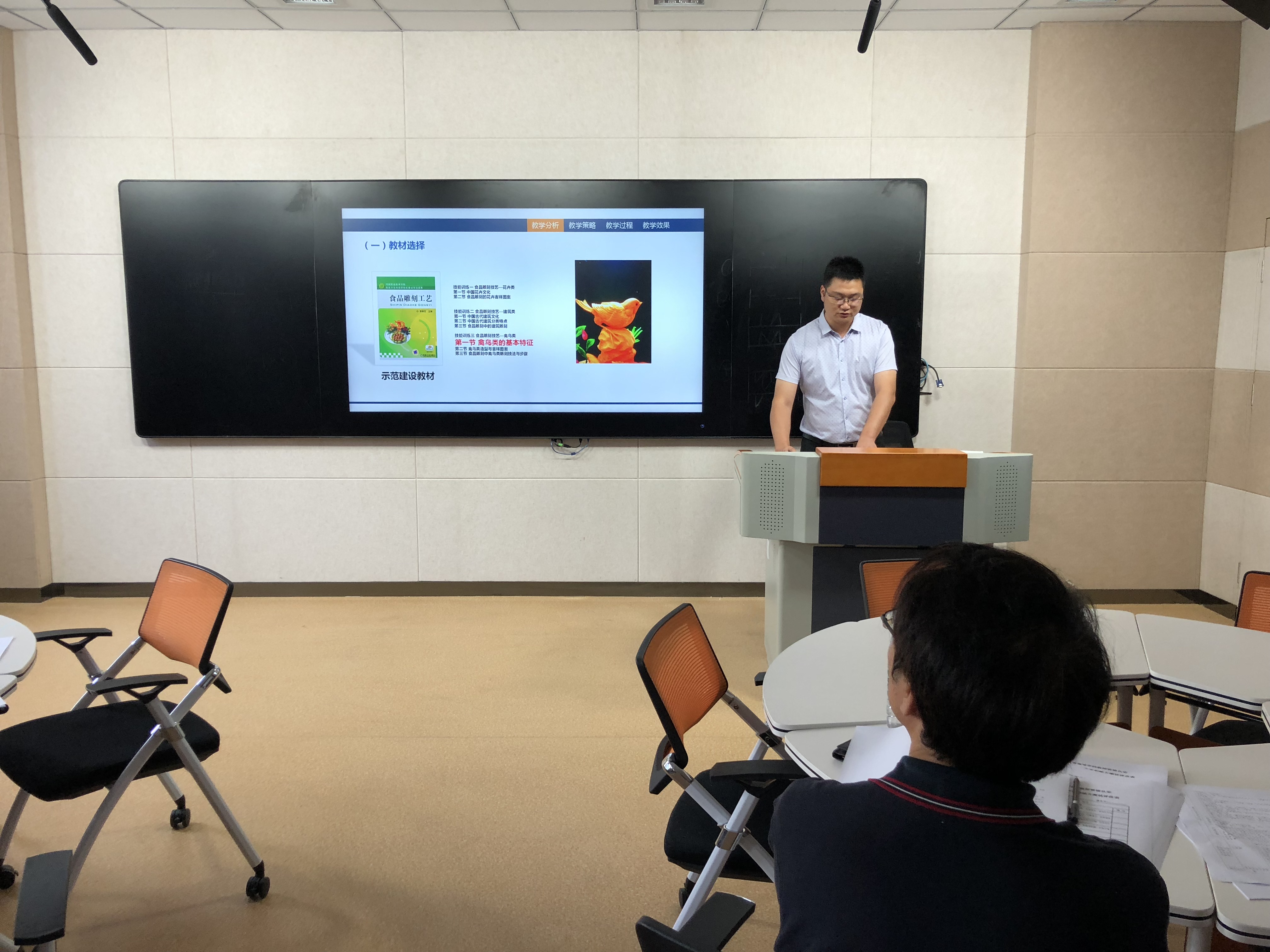 测试内容主要包括专业理论知识与技能、教育教学实践能力和基本教育素质,测试以“试讲(说课)+面试”的形式开展,来自酒店管理学院、旅游管理学院、烹饪与营养学院和基础部的4名年轻教师参加了现场测试。教师们根据自己的教师资格申报方向,结合所在的专业和具体课程,展示了课程的教学设计及教学实施过程。