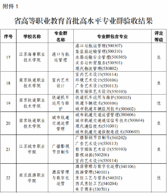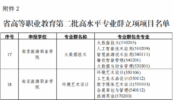 近日,江苏省教育厅发布了《省教育厅办公室关于公布省高等职业教育首批高水平专业群验收结果及第二批高水平专业群立项名单的通知》,我院酒店管理与数字化运营专业群以“优”等级通过验收(全省仅有26个项目评定等级为“优”)。同时,大数据技术专业群和环境艺术设计专业群成功获批为省级第二批高水平专业群建设立项。
