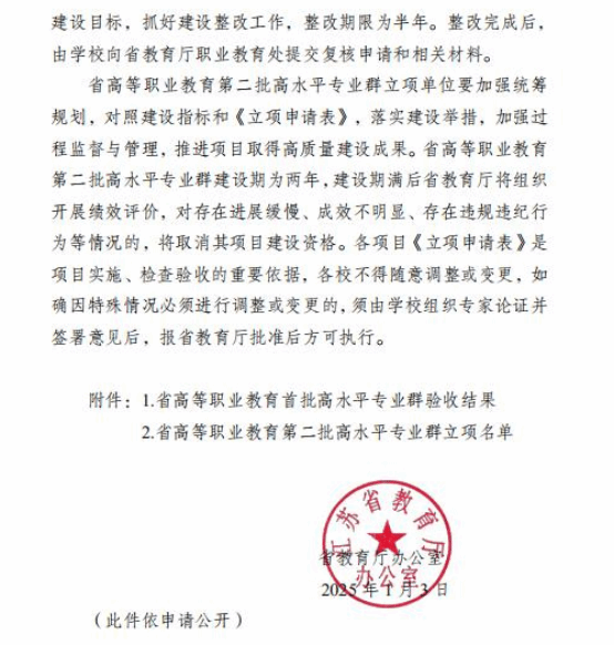 此次顺利通过省教育厅高水平专业群验收,并新获批两个专业群建设立项,充分彰显了我院在教育教学改革、产教融合、人才培养质量等方面的突出成效,得到了高度认可。学院将以此为契机,总结经验,提炼特色,继续秉承改革创新、实干争先的理念,深入对接行业需求,强化产教融合,加强人工智能技术的应用研究,为区域经济转型与数字化发展提供人才支持,积极推动中国式职业教育现代化进程,为建设教育强国贡献智慧与力量。