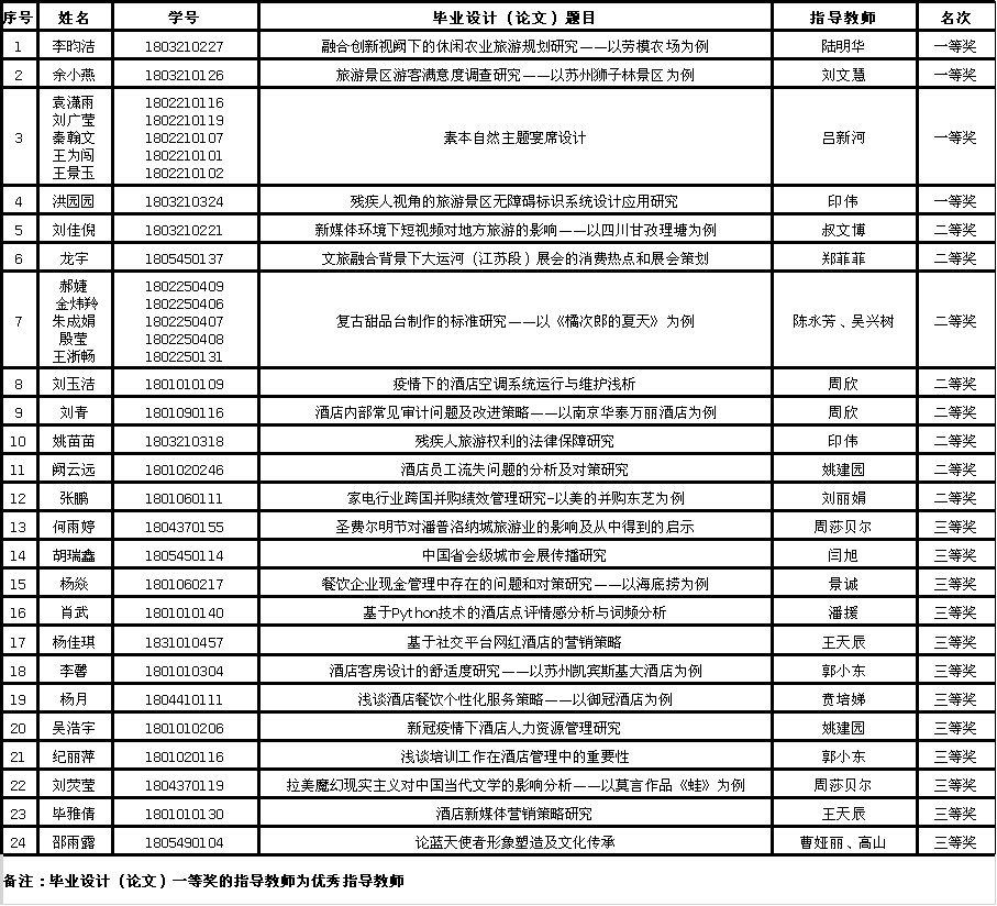 附件:南京旅游职业学院2021届毕业生优秀毕业设计(论文)及优秀指导教师评选结果