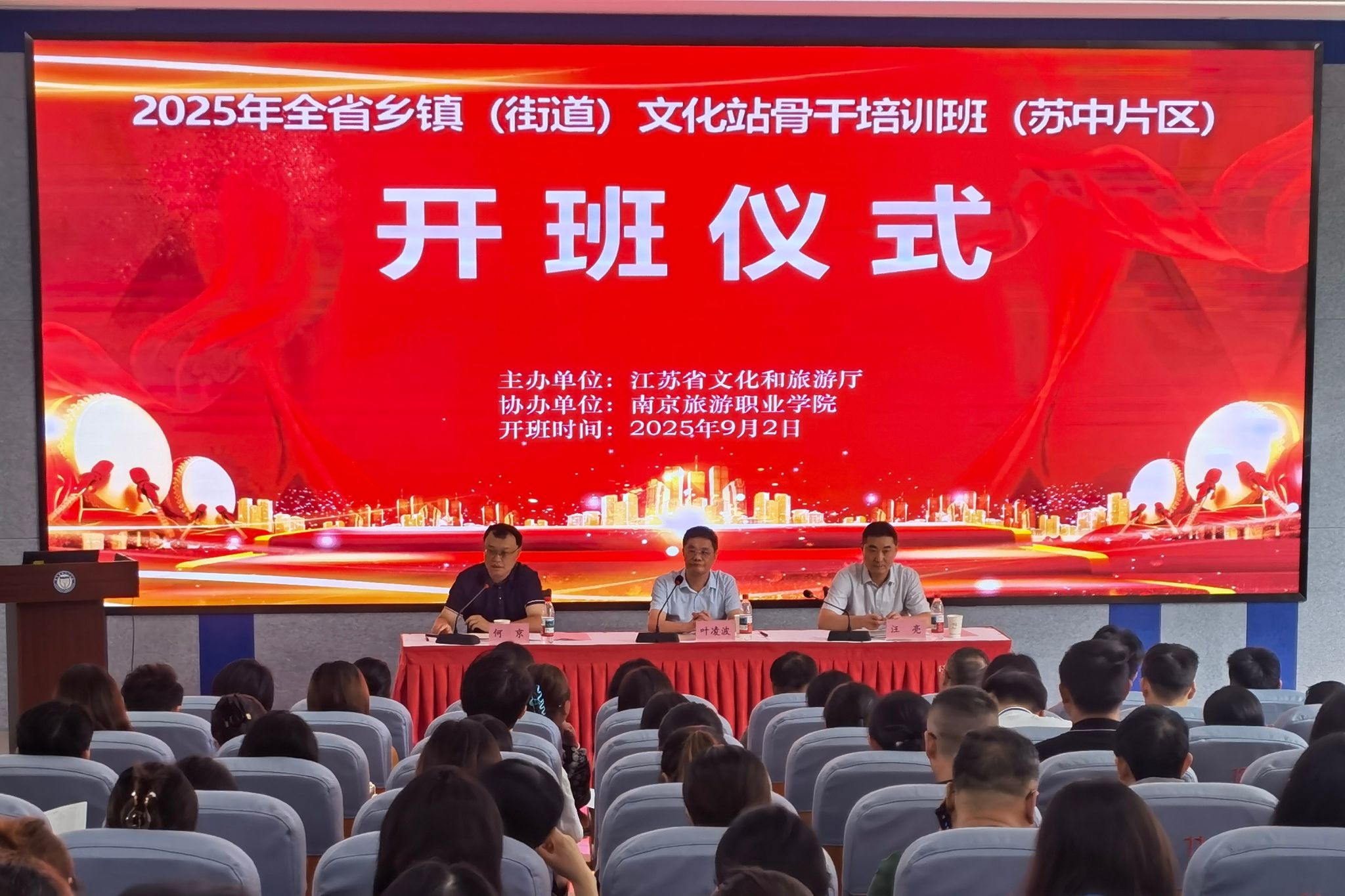 9月2日上午举行开班仪式。南京旅游职业学院党委书记叶凌波、江苏省文化和旅游厅公共服务处处长汪亮出席开班仪式并讲话。叶凌波对参加此次培训的苏中地区文化站工作人员表示了热烈欢迎,并对我院的办学概况、专业特色及社会培训等情况做了介绍。汪亮主要介绍了目前全省基层文化站的建设发展情况,并强调基层文化站的重要性,希望能够通过此次培训助推基层公共文化服务创新发展,为基层文化振兴注入新动能。开班仪式由江苏省文化和旅游厅公共服务处四级调研员何京主持。