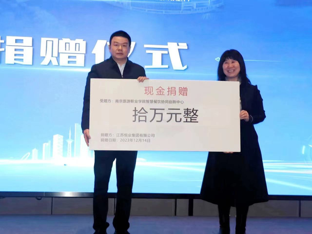 操阳为智慧餐饮协同创新中心主任、副主任颁发聘书,邸平伟为与会17位专家颁发专家聘书,洪涛为16个合作单位授牌。江苏恒业集团、江苏贺盛实业有限公司和北京源源点点网络科技有限公司代表上台共捐赠总值23万元的现金和设备支持智慧餐饮协同创新中心建设。江苏省高淳国际慢城旅游度假区管理委员会、江苏省农业科学院农产品加工研究所、江苏贺盛实业有限公司、江苏恒业集团、华怡明都酒店管理集团和深圳博为教育科技有限公司六家单位现场签订了合作协议。智慧餐饮协同创新中心将与以上单位在度假区餐饮发展、农产品加工研究、团餐餐饮产品开发与质量管理、调味品开发、连锁酒店餐饮核心产品开发和智慧餐饮等方面开展深度合作,共同推动智慧餐饮事业发展。