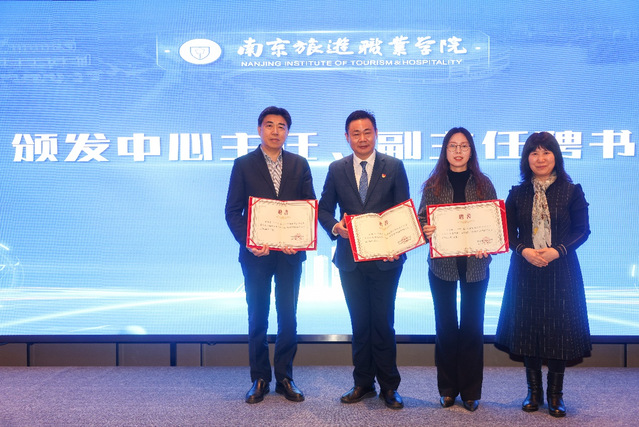 南京旅游职业学院智慧餐饮协同创新中心在科研开发处的指导下联合政府、高校、科研院所、行业协会和知名企业等多家单位共同组建,打造“政企行校”四方协同的创新实践平台。江苏省高淳国际慢城旅游度假区管理委员会、南京高淳区文化和旅游局、南京江宁区文化和旅游局非遗保护中心、东南大学、扬州大学、江苏省农业科学院、江苏省餐饮行业协会、江苏省烹饪协会、江苏恒业集团、江苏贺盛实业有限公司、江苏华怡明都酒店集团、卓联餐饮服务有限公司、蓝蛙餐饮管理有限公司、金陵饭店股份有限公司、北京源源点点科技有限公司、深圳博为科技有限公司、山东正品贵德软件有限公司、《江苏调味副食品》编辑部、江宁品悦楼酒店十九家企事业单位和行业协会的领导专家莅临本次会议。