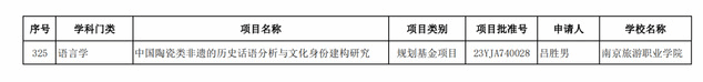 近日,教育部发布了《教育部社科司关于2023年度教育部人文社会科学研究一般项目立项的通知》,我院基础部吕胜男教授负责申报的《中国陶瓷类非遗的历史话语分析与文化身份建构研究》项目成功立项规划基金项目。