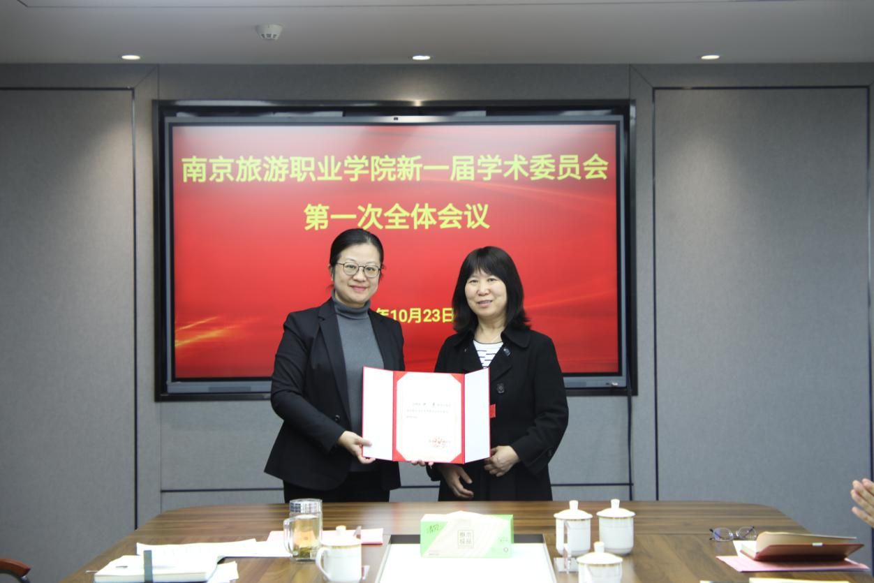 会议首先由邸平伟宣读了学院党委会讨论通过的有关学术委员会换届结果的决定,并就新一届学术委员会产生及委员构成情况作了说明,强调新一届学术委员会换届工作是在学院领导下严格按照《南京旅游职业学院学术委员会章程》(以下简称《章程》)组织实施。之后按照《章程》规定,会议对党委会讨论审定的学术委员会主任委员和副主任委员人选进行了选举,一致通过洪涛教授为学术委员会主任委员、张骏教授为学术委员会副主任委员。随后,操阳为全体委员颁发聘书予以聘任并发表讲话。操阳表示,学术委员会在高校当中是一个非常重要的机构,新一届党委对其高度重视。操阳强调,新任学术委员会委员具有学术的代表性、学院各专业的代表性以及诚信教科研的代表性,要求各位委员在今后的教科研工作中首先要做好表率,其次,在学术决策过程中发挥好规范引导的重要作用,助推学院高质量发展。
