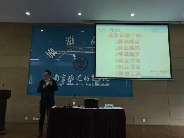 5月3日下午,应国际旅游系的邀请,南京舜天海外旅游职业培训学校校长、江苏省旅游局旅游行业培训专家、江苏舜天海外旅行社行政事业部总经理张继峰先生来到我校,在二号楼报告厅给我系师生做了题为“旅游院校师生如何创新创业?”的讲座,受到大家的热烈欢迎。 张校长首先怀着浓浓的人文情怀从古诗和对联谈起自己的名字,指出信任是交流的第一要素,导游活动中应该想方设法地让对方记住自己的名字以建立信任。之后张校长从互联网最新的创业项目——摩拜MOBIKE共享单车谈起,旁征博引,指出创新创业的两大要素——解决痛点和商业模式。解决痛点即企业必须要有市场,也就是痛点,要学会挑问题。有问题还需要合适的商业模式,比如共享单车中的共享模式。接下来张校长提出了“弯道超车”的概念,指出当今是快速发展充满变革的时代,充满了机遇,我们每个旅游人应该借助互联网做好自己,并就创业的方向给大家提出了建议,指出不管创业成功与否都会给大家积累大量的工作经验。此外,张校长指出旅游学院的学生应该了解旅游,去体验旅游的吃、住、游、购、娱,学会运用互联网工具进行创业,建议同学们可以利用平时的碎片时间实地去感受旅游,不能局限在书本上的知识。 “江山代有人才出,各领风骚数百年”,最后张校长鼓励同学们平时关注互联网、关注旅游,在最好的年华为社会做出最大的贡献。 此次讲座受到了国际旅游系全体师生的一致好评,国际旅游系主任邵华女士为张校长颁发了行业带头人聘书。为了进一步的交流和学习,全系师生还和张校长共建了一个微信群,期望在新的平台能和行业专家多学习、多交流。