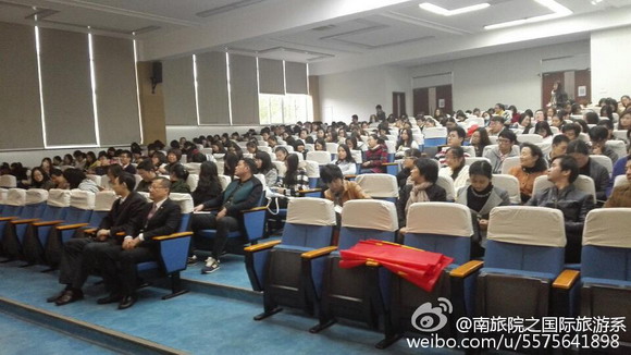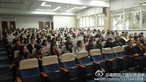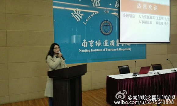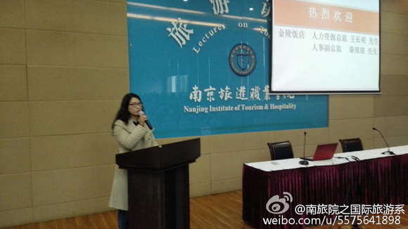11月11日下午,国际旅游系举办专业讲座,请来金陵饭店人力资源总监王长明先生生,全体入学新生和全体教职员工参加聆听了讲座。 王长明先生普是我校品学兼优的学生,毕业后进入金陵饭店工作,从底层做起,经过十几年的拼搏努力,步入酒店高管层面。在讲座中,他从金陵饭店谈起,从世畀酒店业的起步、到当今酒店业现状以及未来发展,做了比较全面的讲解,讲解中有效运用电脑视频,图文并茂内容祥实语言生动,现场气氛热烈互动频繁,是一场不可多得高水平酒店专业讲座。 国际旅游系的教学育人拓展活动,正如火如荼展开。