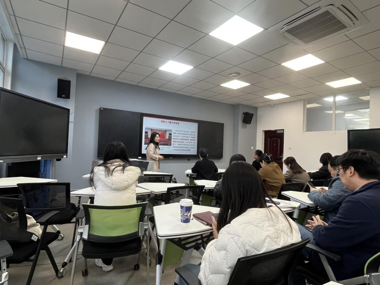 学习会上,马克思主义学院教师赵欢作专题辅导报告。赵欢老师系统解读了二十届三中全会的重大意义、核心要义和实践要求,带领大家深入学习了《中共中央关于进一步全面深化改革、推进中国式现代化的决定》。她结合当前国内外发展形势和高等教育工作实际,深入阐释了全会提出的新思想、新论断、新部署,重点分析了教育领域改革发展的新任务新要求,为与会人员准确把握全会精神提供了专业指导。