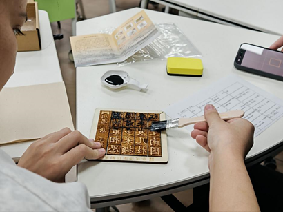 墨香与诗韵交织,匠心与惊喜碰撞。2025年10月29日下午,旅游英语党支部精心策划的“向来华留学生讲好中国故事”系列党日活动之“博物致知,致敬匠心”和“非遗拓印,诗词润心”在英美文化实训室顺利开展。本次活动将中国非物质文化遗产技艺与古典诗词之美巧妙融合,为来自哈萨克斯坦的留学生们带来了一场别开生面的沉浸式文化盛宴。