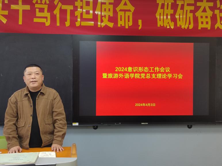 4月3日下午,旅游外语学院党总支在智慧教室3106召开上半年意识形态工作专题会议,会议由党总支组织委员马一骞主持,总支全体党员参加会议。