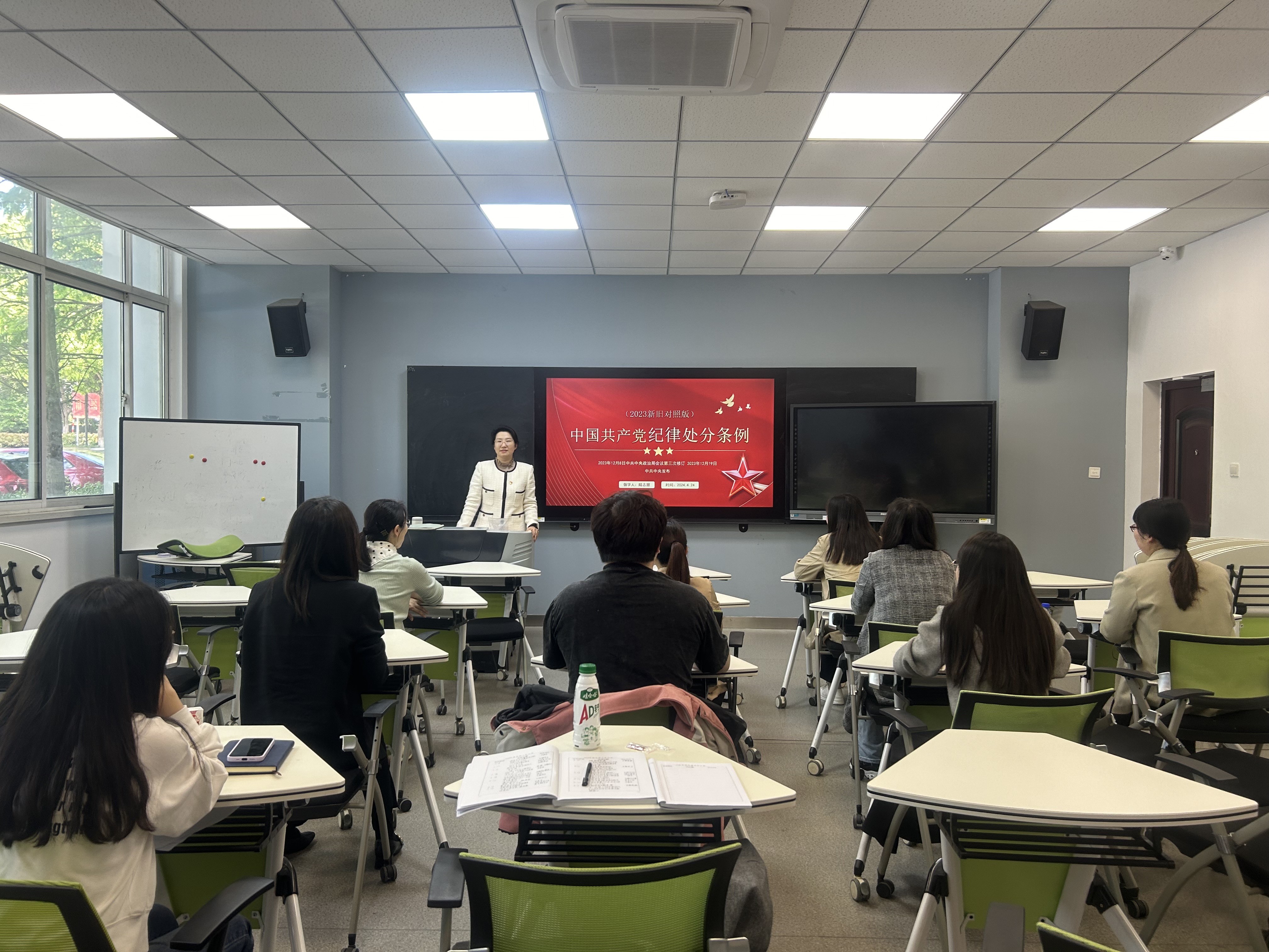 为适应新时代党的建设新要求,加强党员的纪律教育,旅游外语学院大学英语及小语种党支部424日下午在智慧教室3106组织全体党员教师集中学习了新修订《中国共产党纪律处分条例》。