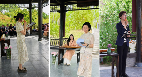 2025年4月16日,旅游英语党支部携手共建单位田园水韵党支部,在半山园在明轩开展了“非遗进校园 双语话传承”主题活动,特邀社会“五老”,省级非遗古琴传承人、江左古琴艺术研究院院长倪飞,院关工委副主任张玲文参加,活动以古琴雅集、双语诗诵、诗词接龙等创新形式,探索党建引领下文化育人新路径,为新时代高校党建工作注入鲜活文化基因,支部全体党员、少数民族学生代表及俄罗斯留学生等共同参加了活动。