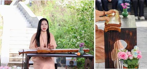 2023年4月,国家主席习近平与法国总统马克龙在广州共同欣赏古琴演奏《高山流水》,展现了中华文化的博大精深和中国人民重情重义的精神品格。活动中,倪飞老师从古琴形制之美入手,现场演示“吟猱绰注”等古琴技法,讲述了守护与传承古琴艺术的心路历程,强调了非遗传承不仅是技术的延续,更是文化根脉的守护,展现了文化工作者的责任与担当。她还将古琴艺术中蕴含的“清正廉明”精神与共产党员的品格追求相结合,引发深刻思考。