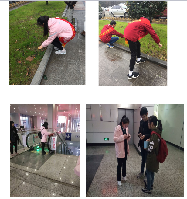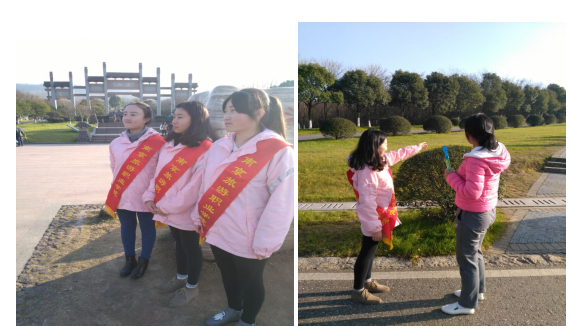 旅游日语班切实从身边小事做起,在寒冷的冬日中捡垃圾,心怀感恩使她们充满了无限的动力,用自己的行动回报着社会。其次,西语班也没有闲着,她们来到了义乌打扫广场,为扫地工人们分担了一部分扫地工作,减轻了扫地工人们的负担,也给予自己锻炼的机会。感谢社会,不需要冠冕堂皇的装饰,而需要每一个人怀着一颗虔诚的心用自己不一样的方式来实践。韩语班踏着感恩的步伐来到了南京南站,热心的帮助别人排队买票并且帮助清洁工阿姨做了一些力所能及的清洁工作。除此之外,旅游英语班也不甘落后,她们充分发挥自己的专业的优势来到了景区,悉心的为来往的游客进行景区讲解与服务,用自己的行动践行着以微笑和知识服务社会的校训,让社会感受到我们无私奉献的正能量。
