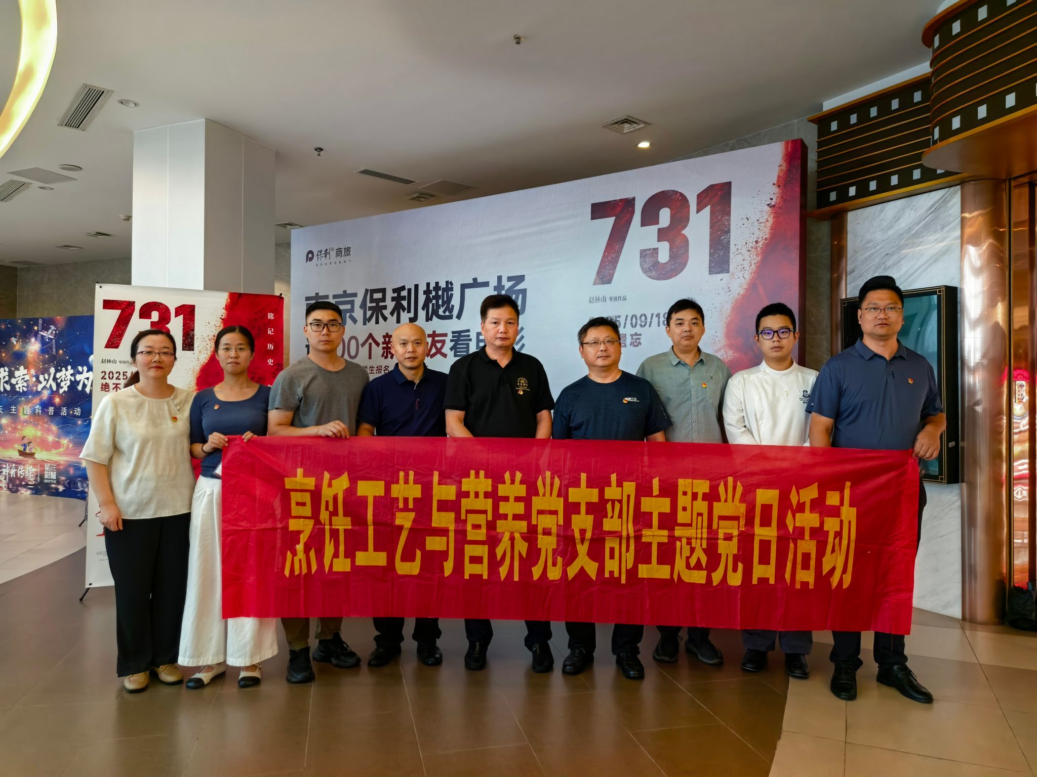 为深刻铭记历史、缅怀革命先烈,进一步激发支部党员的爱国热情与责任担当,2025年9月24日下午,烹饪工艺与营养党支部组织全体党员,并邀请教研室非党员老师共同观看历史题材电影《731》,以影像为载体开展爱国主义教育主题党日活动。