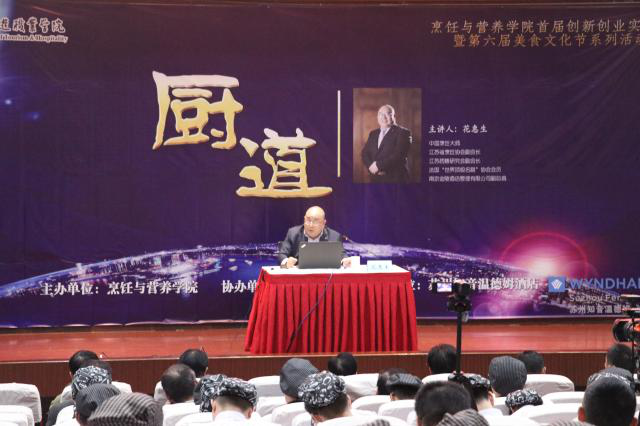11月14日下午,南京旅游职业学院名厨大讲堂——“厨道”专题讲座在图书馆报告厅举办。本次讲座是烹饪与营养学院“首届创新创业实践周暨美食文化节”活动之一,请来中国烹饪大师、金陵酒店管理公司副总裁花惠生大师,与全院师生共论“厨道”。烹饪与营养学院副院长吕新河、党总支书记胡国勤及学院师生代表共同聆听了此次讲座。