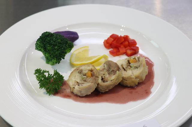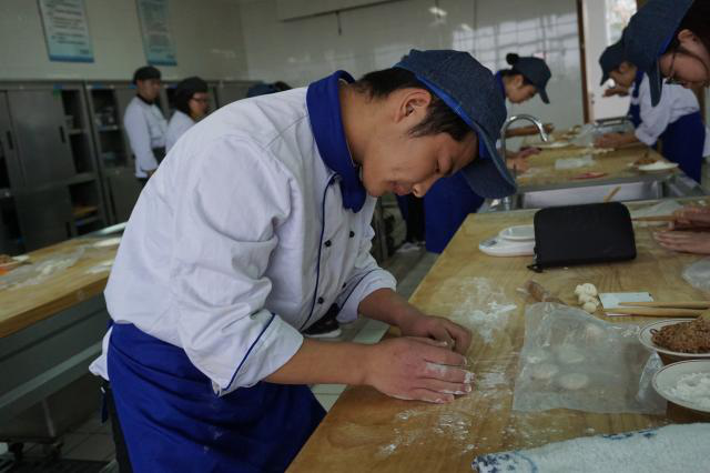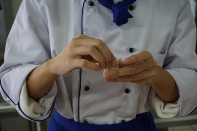 中式面点将“灵巧”二字淋漓尽致地体现了出来,同学们将一张面皮,一点馅料就可捏成大小一致,褶皱均匀,外形美观的花色蒸饺,而自选创意包的制作更是体现了参赛同学们的创意,形态更是花色多样,让人不禁赞叹中式面点的品种之丰富,形态之多样。西式面点则体现出了很强的工艺性,在制作每道工序时同学们都将配料比例掌握地非常清楚,制作过程中更是用着心去感受甜点所带来的乐趣,同学们制作的成品更是充分展现了蛋糕的绵软清香,饼干的香甜酥脆。