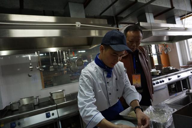 2017年11月17日上午8:50,烹饪与营养学院在实训楼2204和蓝蛙教室举行第30届“合点寿司成才杯”技能竞赛西式烹饪比赛。本次参赛选手来自163西餐工艺班和163蓝蛙班选拔出的12名选手,评委团队是以担任过国际奥林匹克评委的陆少凤大师为主评委,陆理民,赵世和,孙在荣,高志斌等西餐实训老师担任副评委,现场还有监理:向芳老师,服务志愿者:大一的西餐班同学。比赛过程每人一个操作台,宽大的操作空间,70分钟装盘两道西餐鸡肉类菜肴,比赛标准也以大赛标准制定,俨然一场精彩西餐操作表演即将上演。