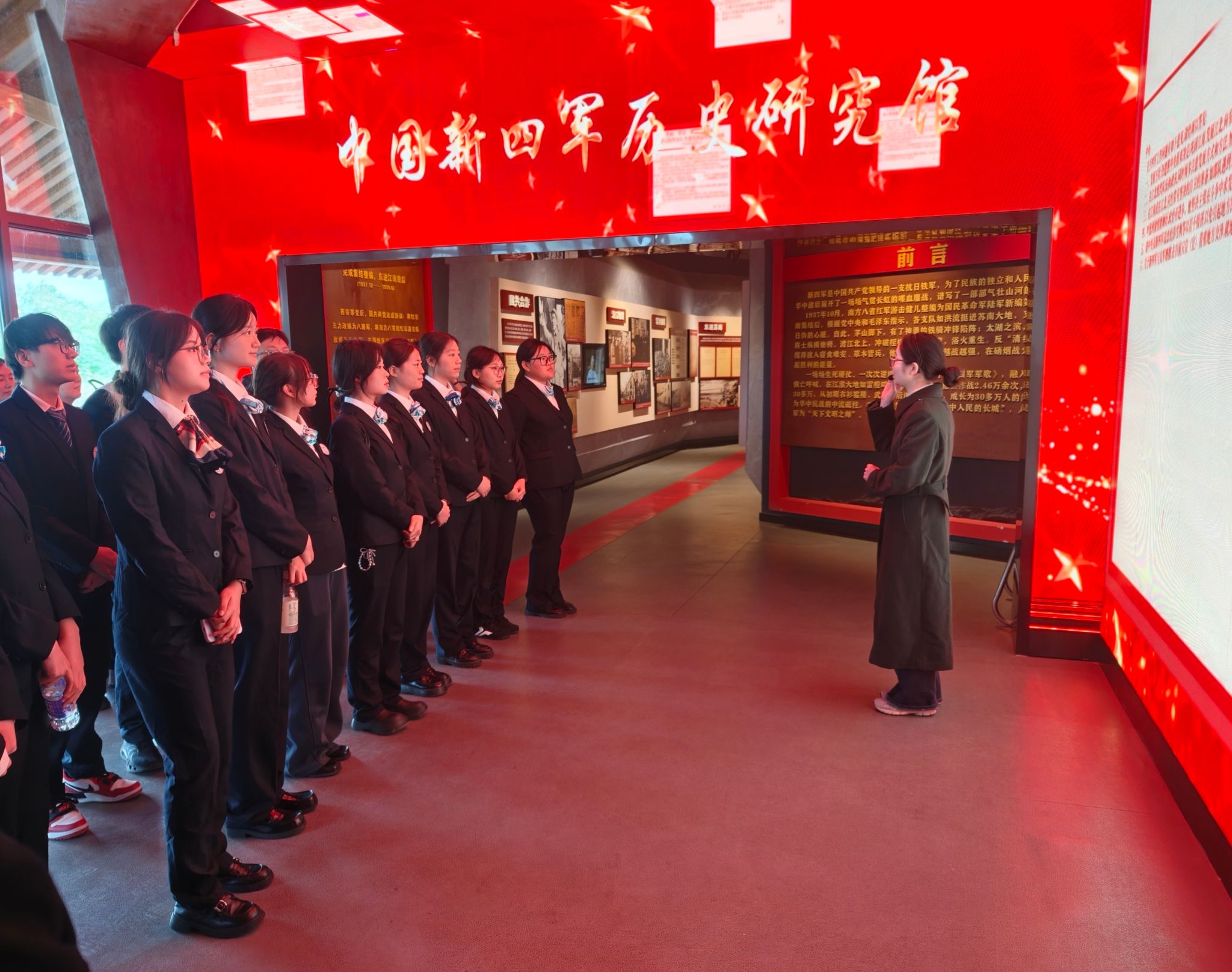 活动当天,团员青年们身着整齐,满怀崇敬地踏入这片承载着厚重历史的土地。在讲解员的引领下,大家依次参观了多个展馆与遗址,一幅幅珍贵的历史照片跃然眼前,一件件革命文物诉说着往昔的峥嵘岁月,让团员青年们仿佛穿越时空,亲身感受到了新四军“听党指挥、热爱人民、精忠报国、奋斗牺牲”的铁军精神。