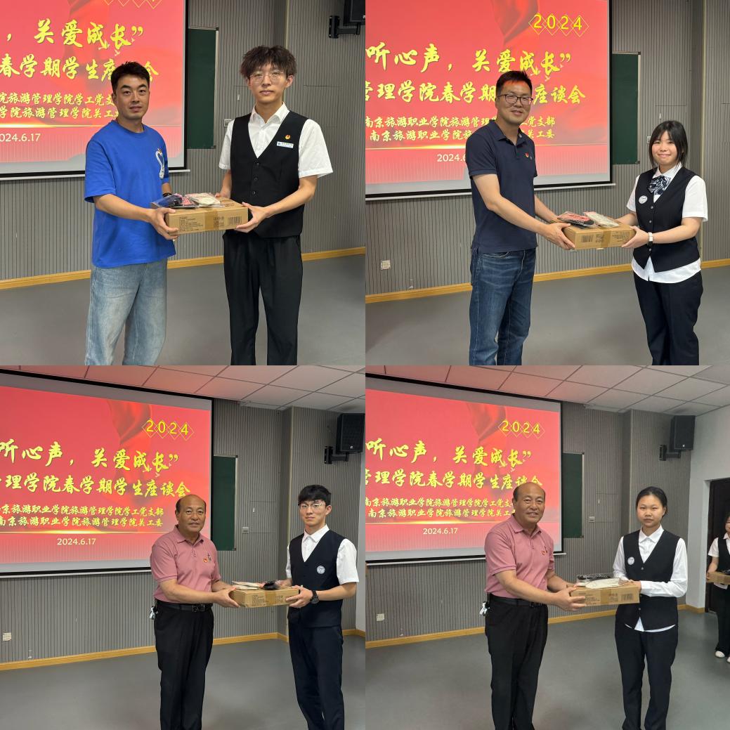 为加强与学生们的沟通交流,深入了解学生在学校的学习和生活状况,积极发现并解决教学中存在的各类问题,推进我院的教风、学风及班风建设,促进整体教学质量不断提高,2024年6月17日,旅游管理学院关工委组织开展了“倾听心声 关爱成长”春学期学生座谈会。旅游管理学院院长顾至欣、旅游管理学院党总支副书记李伟、旅游管理学院关工委副主任许如忠、旅游管理学院学工党支部书记王楠和各年级各专业学生代表共同参会。