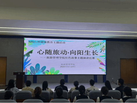 为进一步推动我院大学生心理健康教育工作水平,通过红色故事的讲述,激发学生的爱国情怀,提升学生的心理健康素养,引导学生树立积极向上的人生态度,2025年5月27日,旅游管理学院在2号教学楼报告厅组织开展了“心随旅动・向阳生长”525心理健康教育主题活动之红色故事主题演讲比赛。