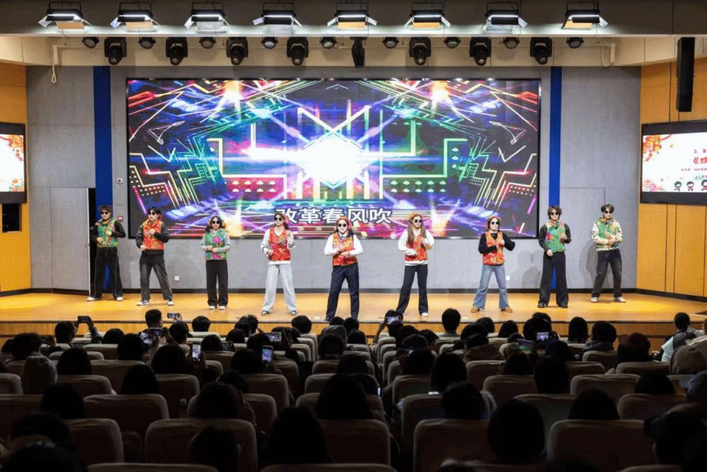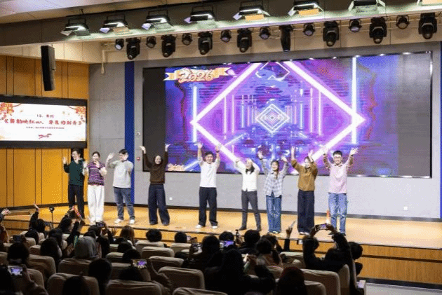 晚会在主持人的热情开场中拉开帷幕。学生会成员带来充满童趣的开场舞《疯狂动物城》和以东北花背心为亮眼元素的舞蹈《踹》,节奏炸裂、飒爽舞姿赢得全场阵阵喝彩。