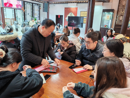 为深入推进320心理健康教育宣传日活动,丰富学生心理健康教育形式,将非遗文化传承与心理疗愈相结合,3月18日,旅游管理学院组织20余名中国大学生与15名外国留学生,走进南京市民俗博物馆,开展“心手相连,非遗润心”主题体验活动,特邀南京市非遗民间布艺传承人高瑞雷老师现场教学指导,让中外学子在一针一线中舒缓压力、滋养心灵。