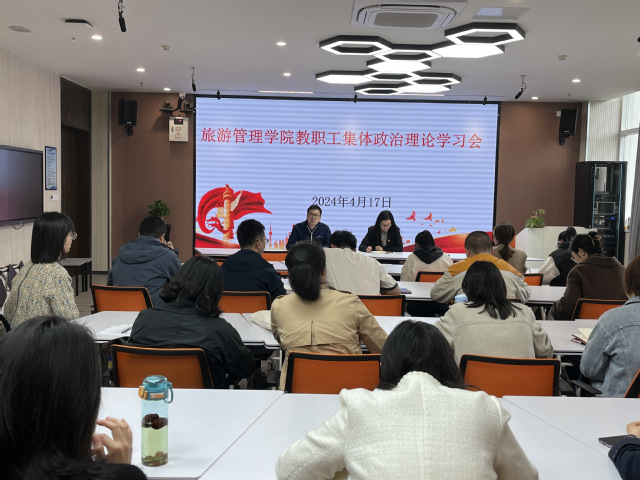 4月17日下午,旅游管理学院召开教职工集体政治理论学习会,全体教职工参加会议,会议由旅游管理学院院长顾至欣主持。
